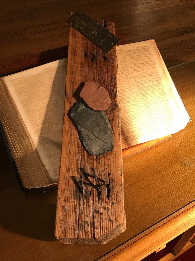 On the occasion of the 150th Anniversary Year (2018) of First Baptist Church, Dallas, Texas, here’s a personal story and special remembrance. In the first half of the 70s, I was privileged to serve on the staff of FBC. It was a life-changing and directing experience in many ways. My last assignment was Minister to Jr High Youth. One day while working with some of the maintenance staff cleaning out a long forgotten and unused area of the Burt Building I came across a small pile of old wood with square nails and several pieces of slate. I was told that it was trash and the maintenance crew put it in a pile to be disposed. Upon further inquiry, I learned that it was remnants of the old steeple that had been replaced much to the dismay of Dr. Criswell. I went back and pulled a piece of the wood with nails and a few pieces of slate from the trash bin. Later, I made this wall hanging. It has always been precious to me. Several years after the Burt Building experience, the Criswell Building was being spruced-up and the beautiful doors that faced San Jacinto Street we’re being refinished. I was walking through the basement and tunnel to the Sanctuary late one evening and there in the big rolling, circular trash container were pieces of the renovation being thrown away. Near the top of the trash pile was the brass 1707 door plate which had been replaced by a 70s “stylish” plastic 1707 which “matched” the numbering system being used in the renovation. Out with the old, in with the new! I attached that special numbered brass plate to the top of the old piece of steeple wood. I smile every time I see this special heirloom, which I know means little to anyone else, but I cherish. After more than 45 years and multiple moves across four states, I’m blessed to still hold it. I was in my early 20s then, now moving into my late 60s. Not sure what prompted me to pickup those pieces, but I’m glad I did. Actually, I guess I’ve always liked “garbage-picking.” There’s a sermon in that — God picked me up from a forgotten trash pile and holds me close. I’m grateful!